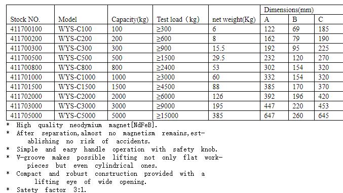 WYS-C Magnetic Lifting Clamp
